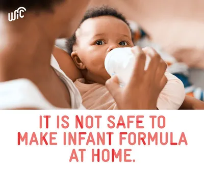 Is your grocery store out of your WIC infant formula? Please contact your local WIC clinic and ask for help. Do not try to make homemade infant formula, as it is dangerous for your baby. Please know that WIC is always here to help and support you during these difficult times. #WICStrong